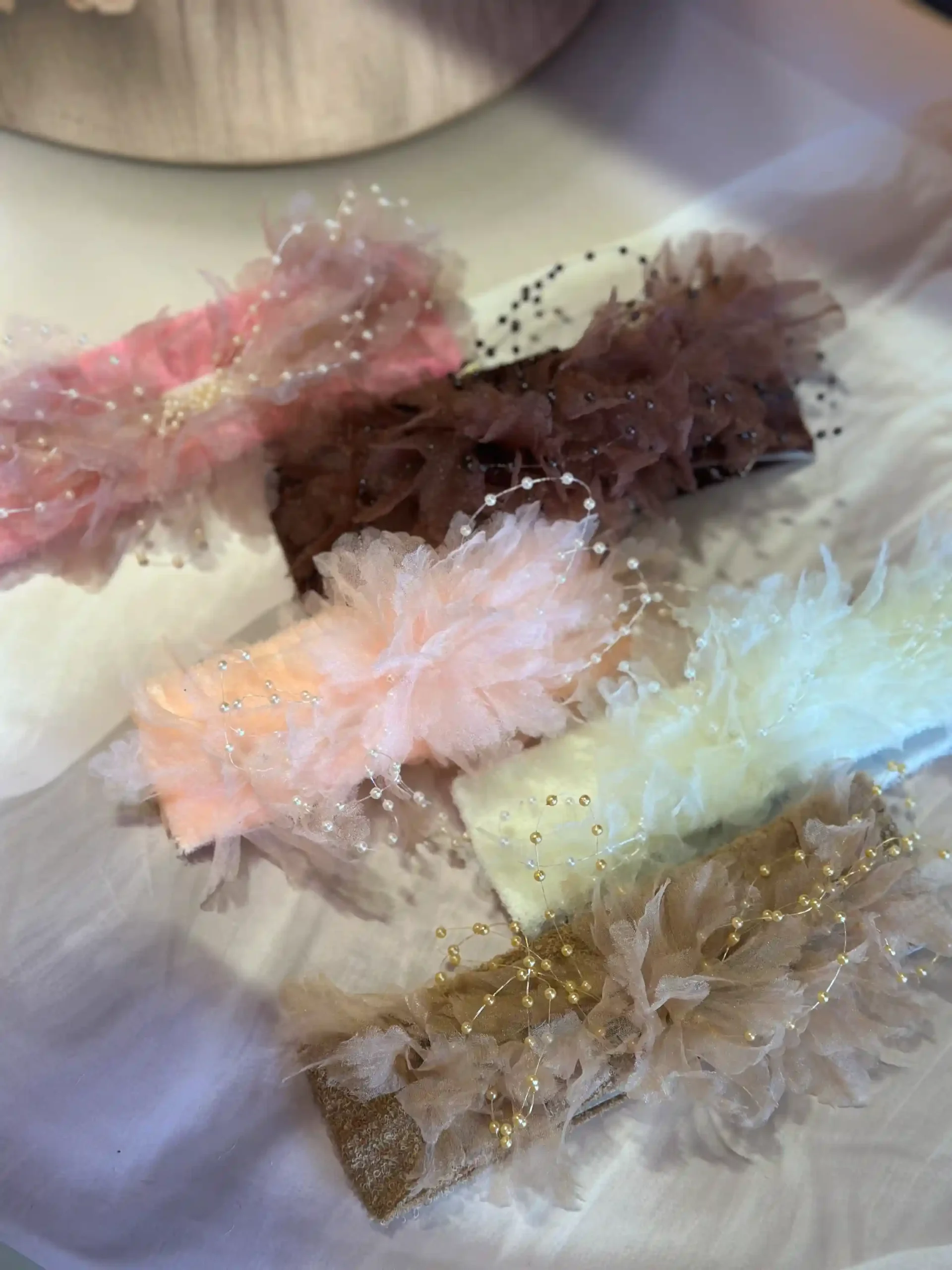 Our etoile Pearl Baby Bands are designed with plush stretch bases and cloud-light tulle florals, delicately accented with fine pearl detailing. Each band feels gentle on your baby’s skin while adding a graceful, festive charm.